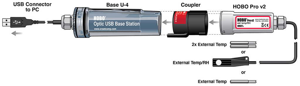 數據卸載 - 基站 - 穿梭車 - 耦合器BASE-U-4光纖 USB 基站U-DTW-1HOBO® 防水穿梭車
